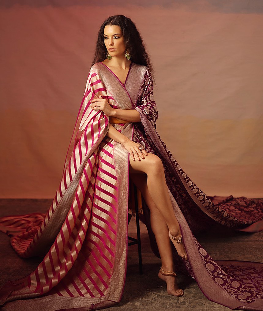 Beige and Pink Tussar Silk Handloom Banarasi Saree