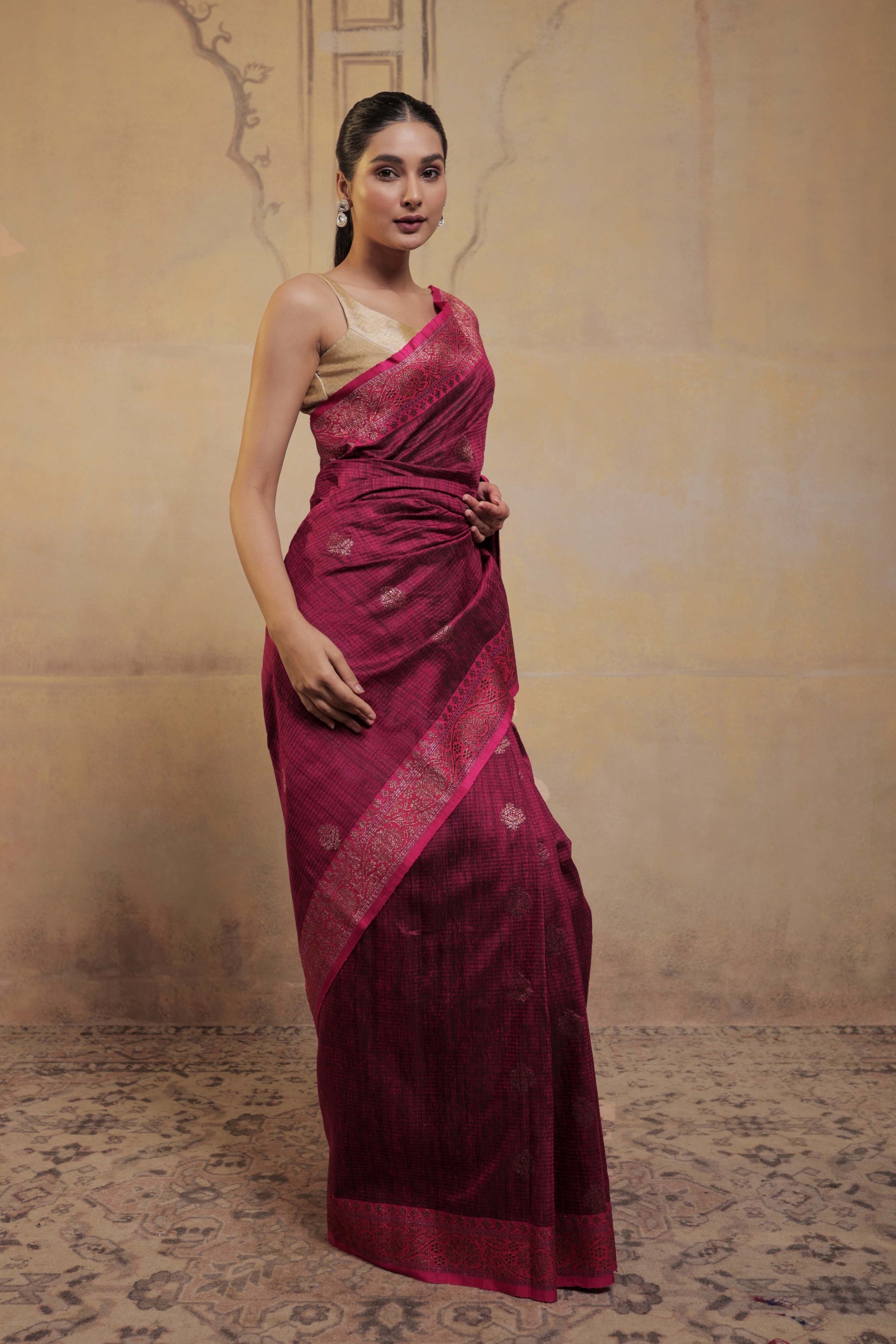 - Note - The saree comes with a Pink Dupion Silk Blouse.The model is wearing a separate blouse for styling purpose.