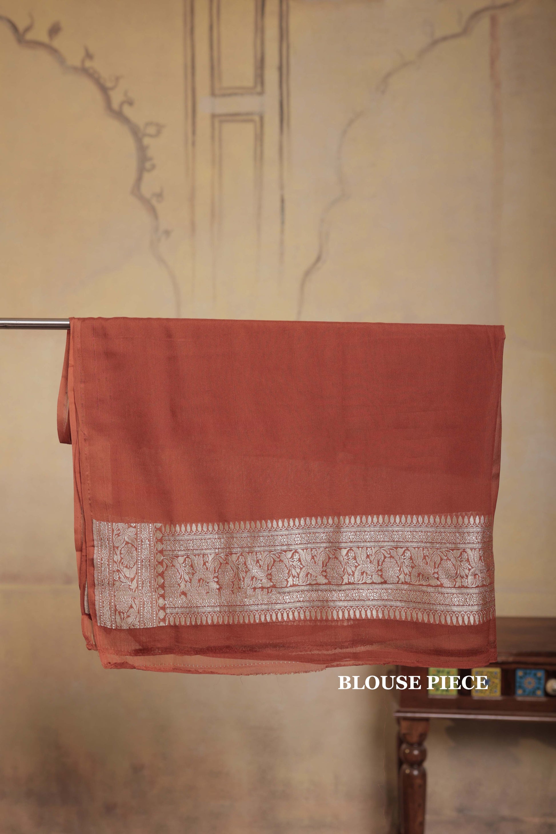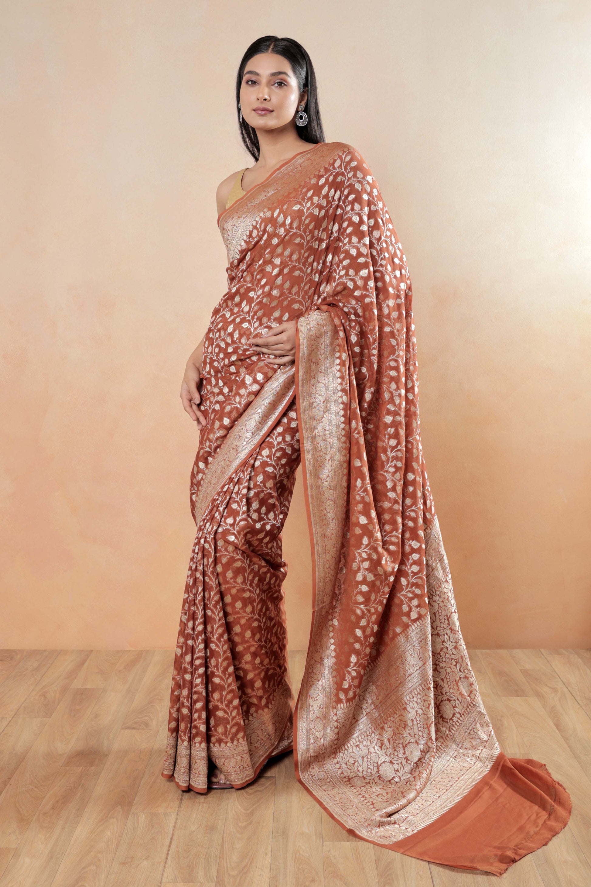 Rust Brown Khaddi Georgette Handloom Banarasi Saree